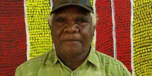 Ngarralja is a Wangkajunga and Walmajarri man. He was born at Yarrnkurnja in the Great Sandy Desert. He dances and sings Kurtal, a ceremony relating to the main jila [living waterhole] in his country...